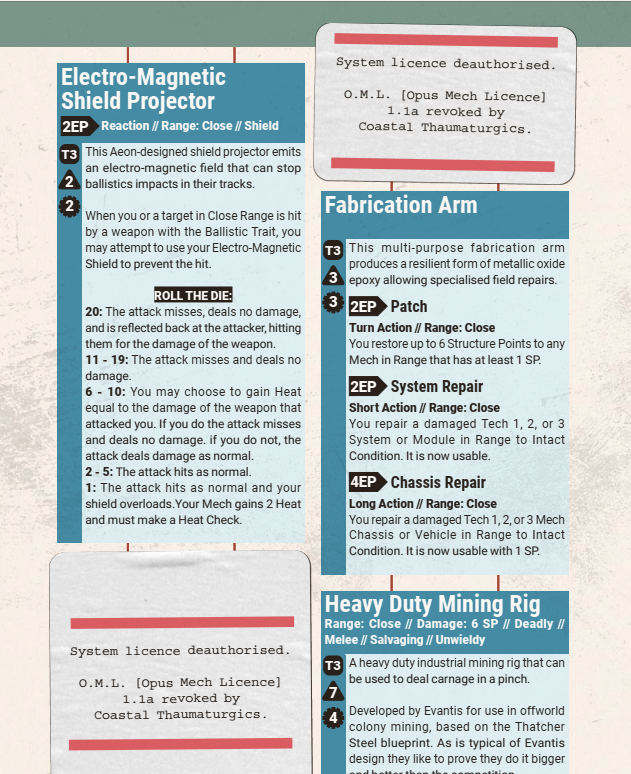 We'll add a Opus License Sticker Sheet to the Asset Pack, which will include new Systems and Modules for the game you can stick directly into your Core Book or Starter Set Parts Catalogue
