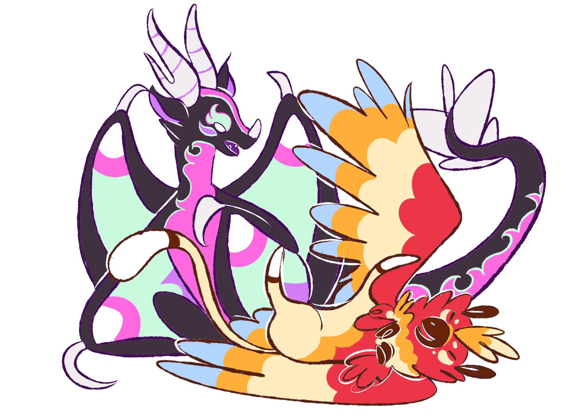 Since that day, anytime she saw the phoenix she attacked and roared in her loneliness and grief, blaming him for everything. He playfully danced around her jabs, unsure why this dragon hated him so much. She never explained fully what happened, being unable to face her terrible loss. This continued on for a century, and their rivalry became the stuff of legend in their forest.