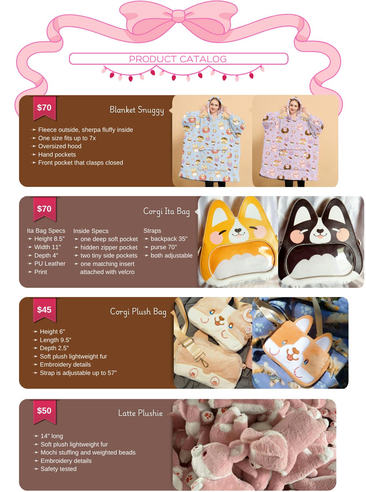 Cuddle up with a plushie in an oversized blanket hoodie with a hot cocoa drink in a cute glass mug or go shopping in style with an adorable corgi bag this Holiday season. Save some money with unique fun bundle deals, or you can grab limited in-stock items that you specifically have your eye on.