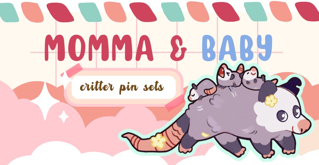 Enamel Pin Sets featuring Momma Critters and their little babies. Pin sets include one 2-2.5", and three .5-.8" hard enamel pins.