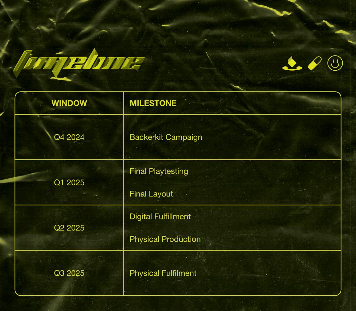 I'd estimate that this as put me about a month behind in work on the project (delaying layout specifically). So we're still within our windows as announced in the campaign, just slightly behind on updates and showing the work in progress. Here's that graphic again as a reminder.