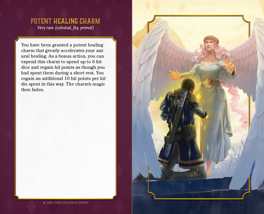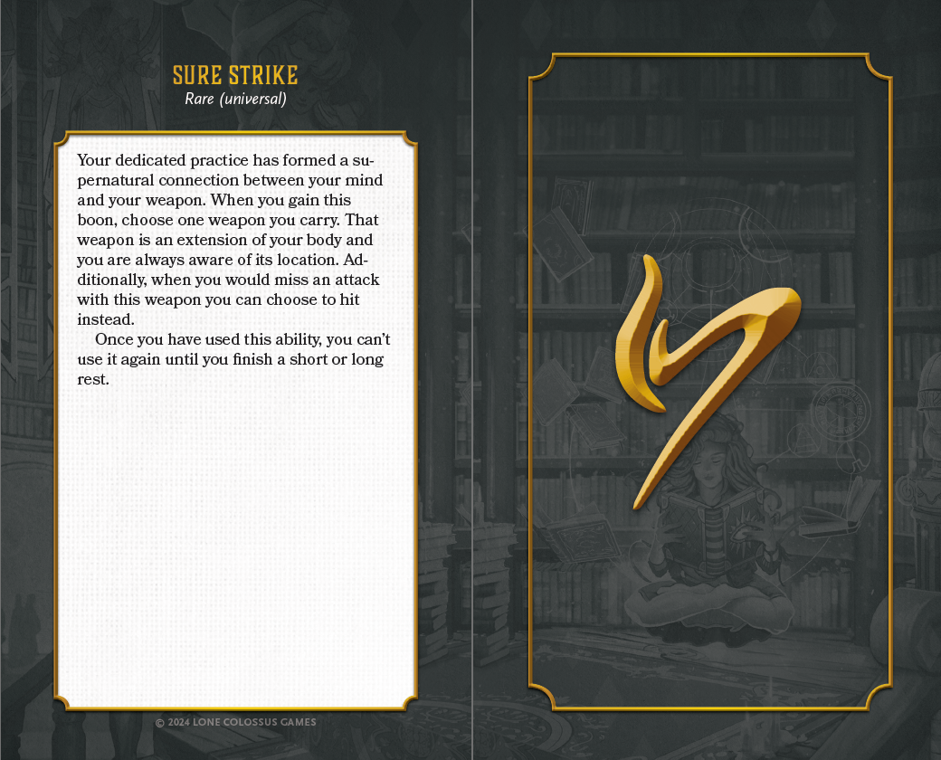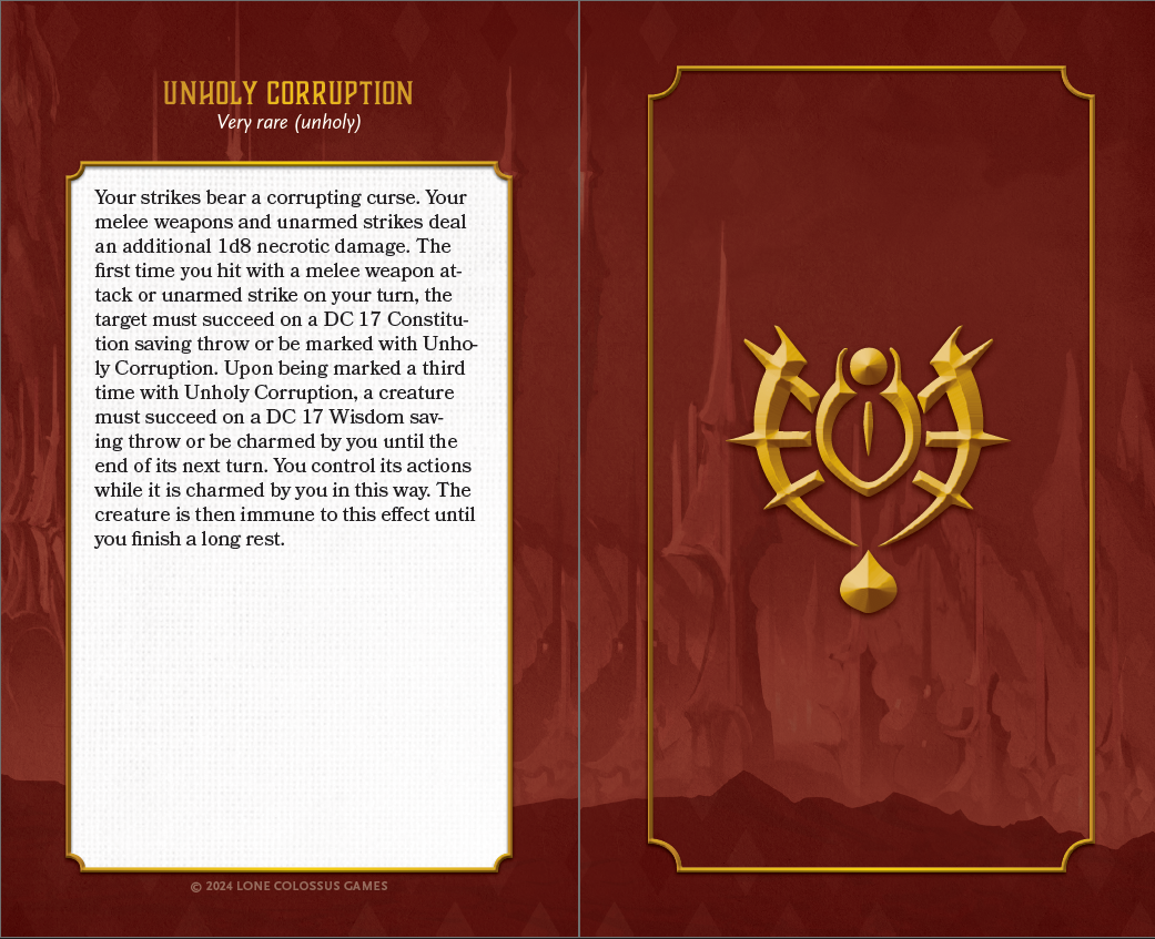 Speaking of cards, here's a preview of what we landed on for the boon, charm, and pact card designs - they're going to look spectacular with the gilded edges we unlocked as part of the physical quality upgrade stretch goal!