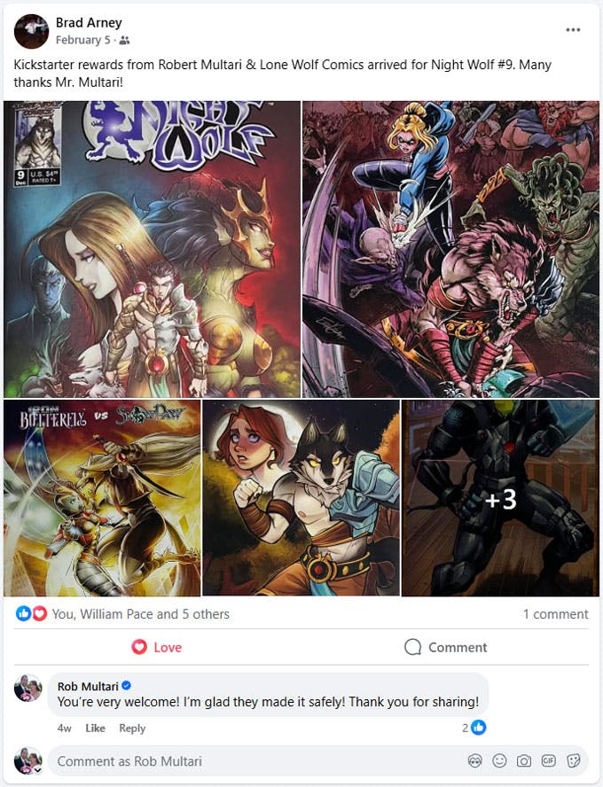 At higher pledge levels, backers will access exclusive mystery boxes possibly containing CGC or CBCS graded Lone Wolf Comics issues, limited edition variants, rare comics signed by both the writer and artists, as well as awesome merchandise!