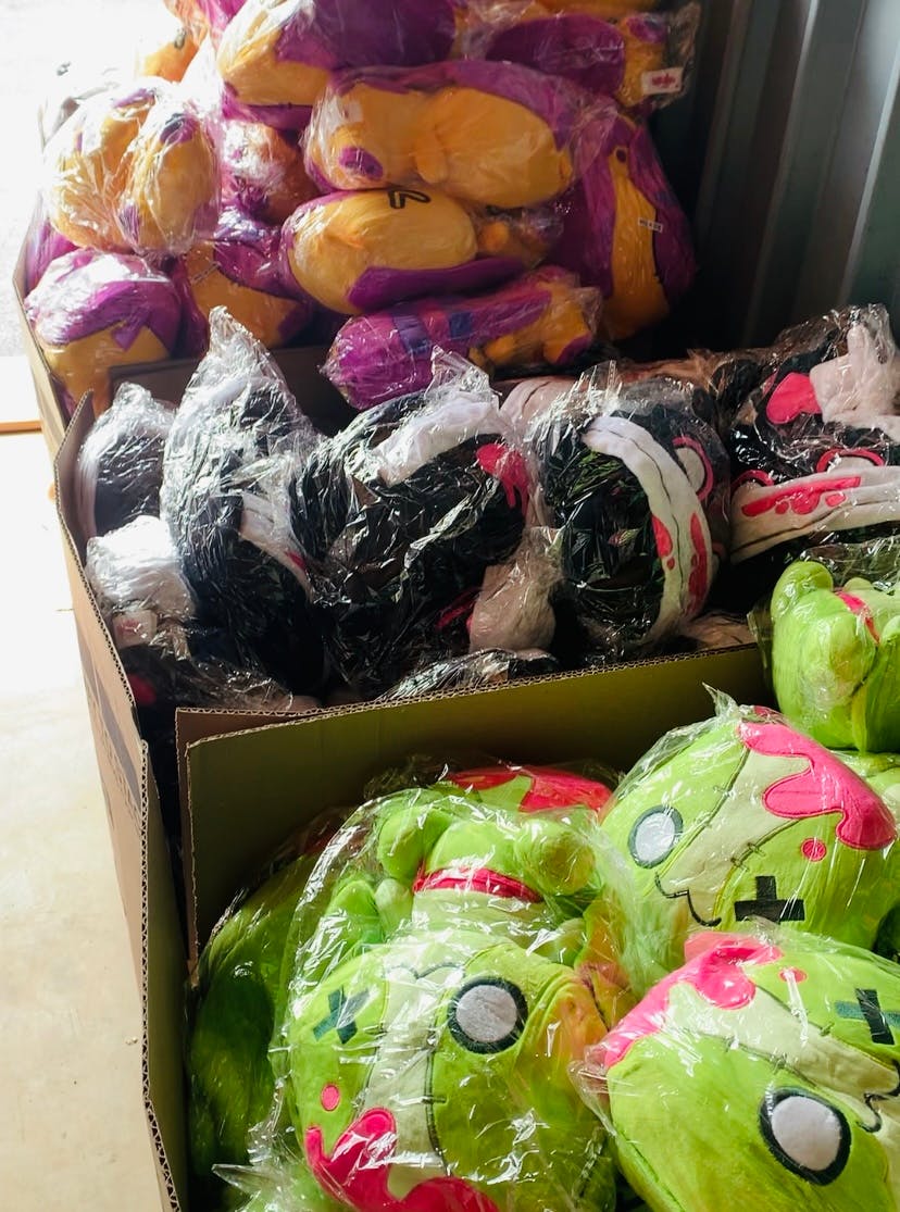 The plushies have all been delivered to my storage unit! We have 111 boxes total of all of our freaky little friends.