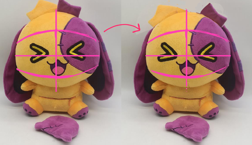 Many users wrote in about the ears looking a bit floppy. The original factory we used suggested no stuffing in the ear, however, my current partner will be adding sponge in the ear to give it a lil more oomph. Mishmash's ear looks so squishable.