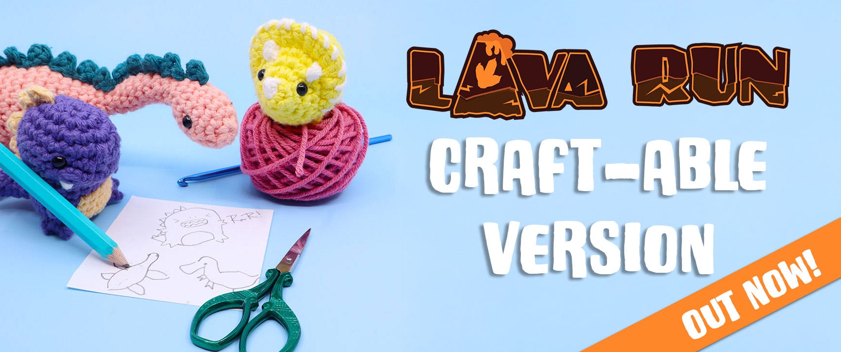 Get your scissors sharpened, hooks buffed, and reading glasses cleaned because the full craftable version of Lava Run is out now! This collection of downloadable content includes the printable version of the board and tiles, crochet dinosaur patterns, 3D print models, and a table top simulator version of the game for digital play!