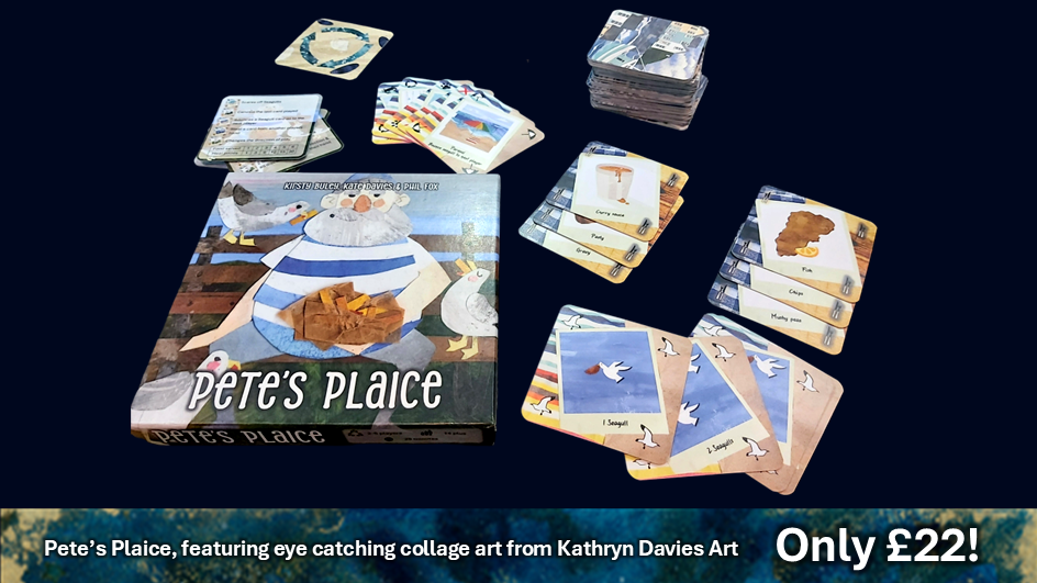 Our Pocketopia release from 2025. Pete's Plaice is a fast paced card game of serving fish & chip dinners and avoiding having them stolen by greedy seagulls.