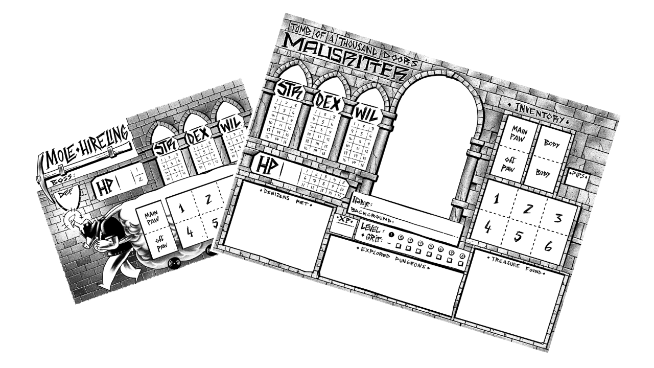 Bruno's character sheets for Mausritter: Tomb of a Thousand Doors