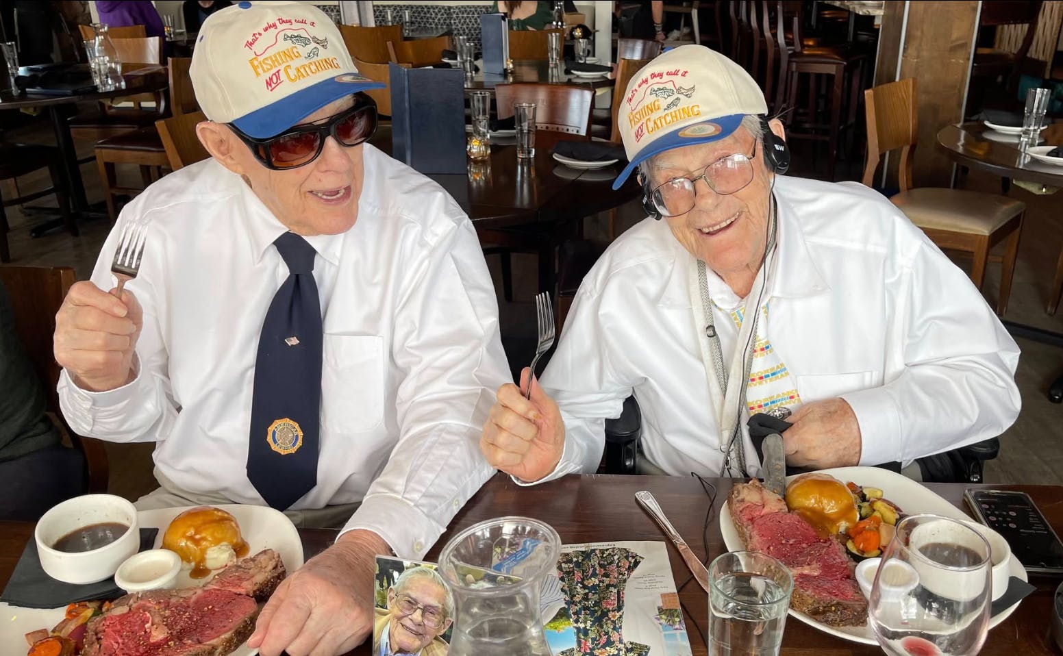 On a personal note, my family gathered to celebrate my father and his identical twin’s 95th birthday. Seeing them both dig into their Prime Rib filled me with a warm glow. Our corner of the restaurant kept the noise down to a mild roar.