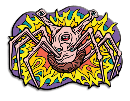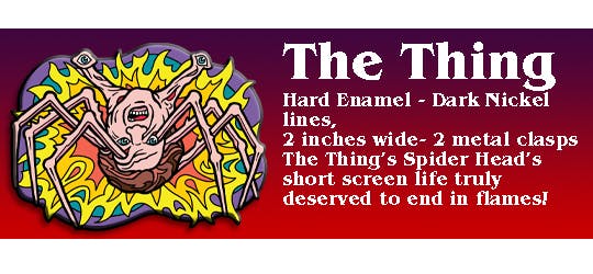 Our second stretch goal of $1,500 is within reach! Here's the sketch I promised to show you. UPDATE: This is the final vector art. Fans of the The Thing will remember the extremely creepy Spider Head. This pin will be two inches wide, with two studs on the back. I'm working on the vector file for it now.