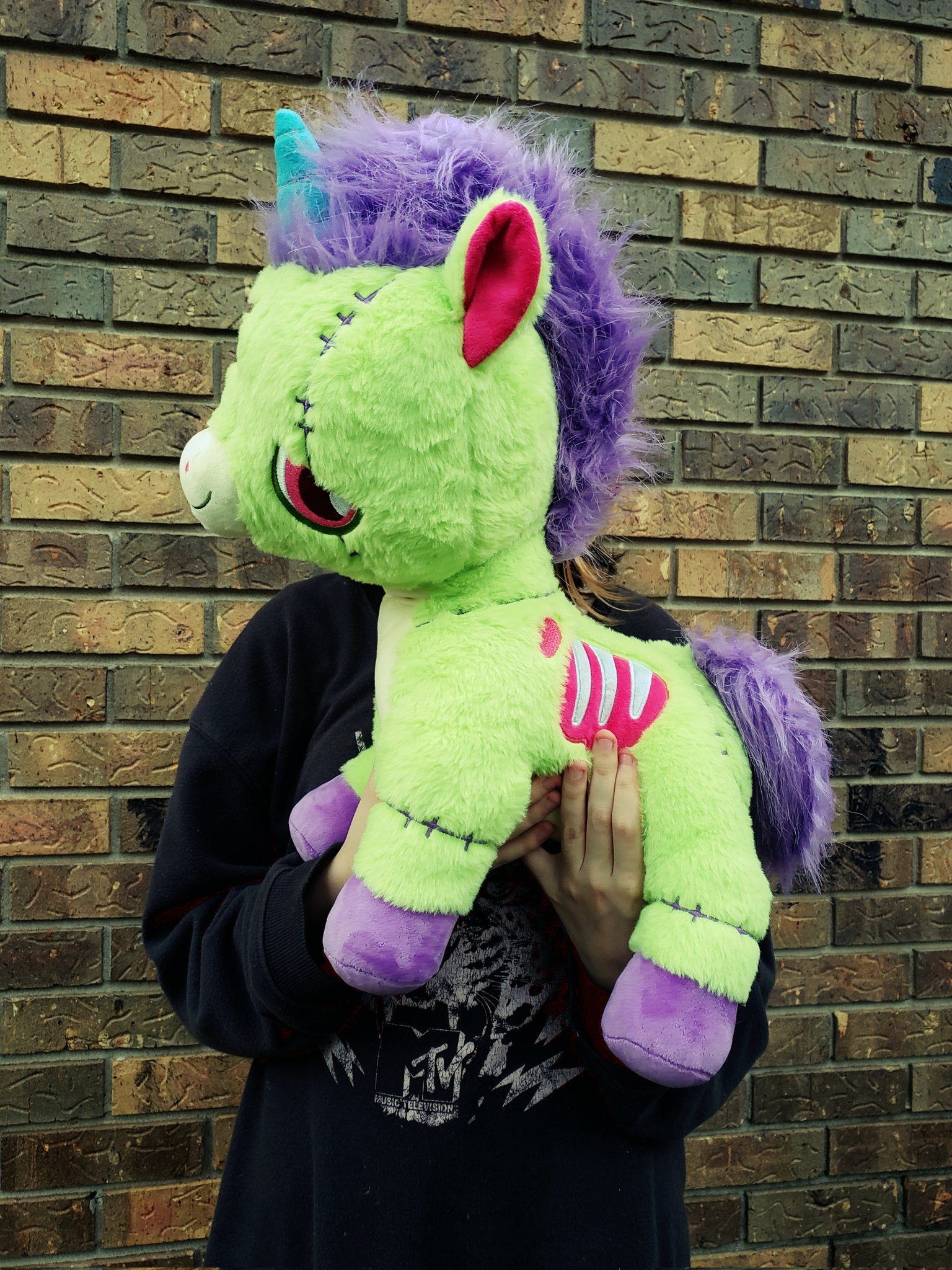 Unlike his carewere cousins, Rotwell has weighted hooves and a zippered belly full of plush guts n' stardust. He's very floppy and very large. Arguably even a little bigger than your average carewere!