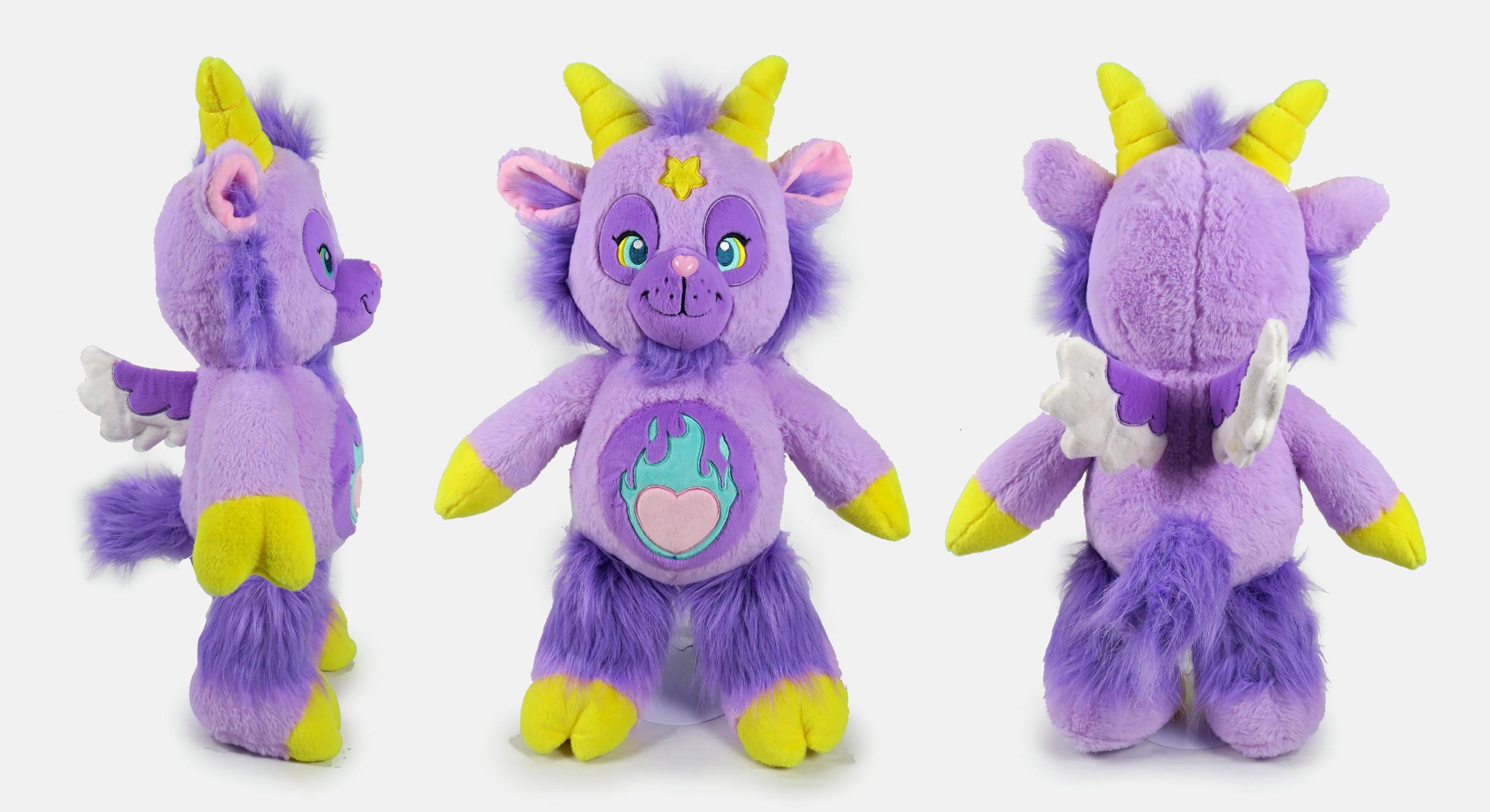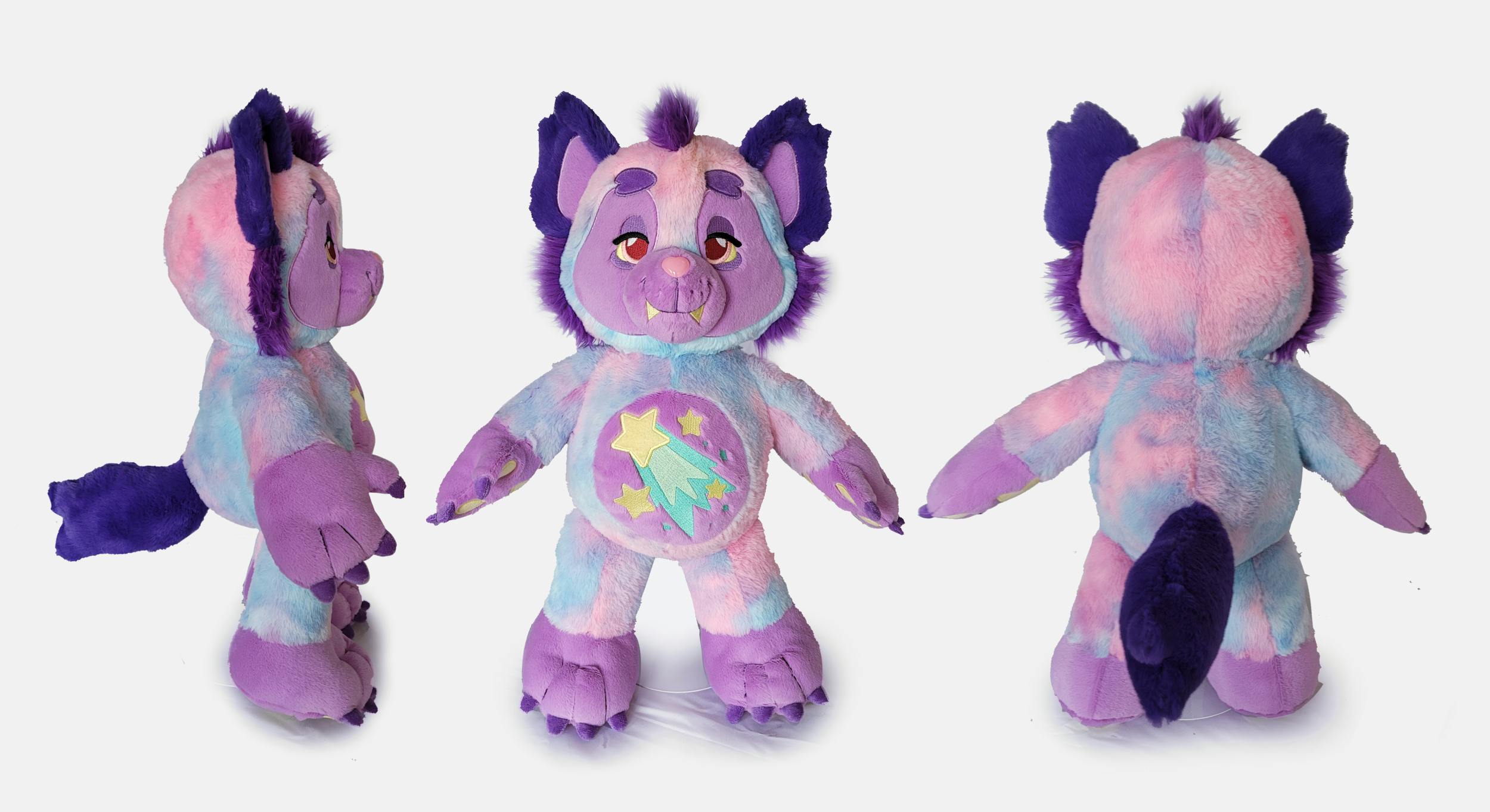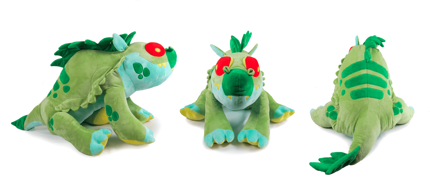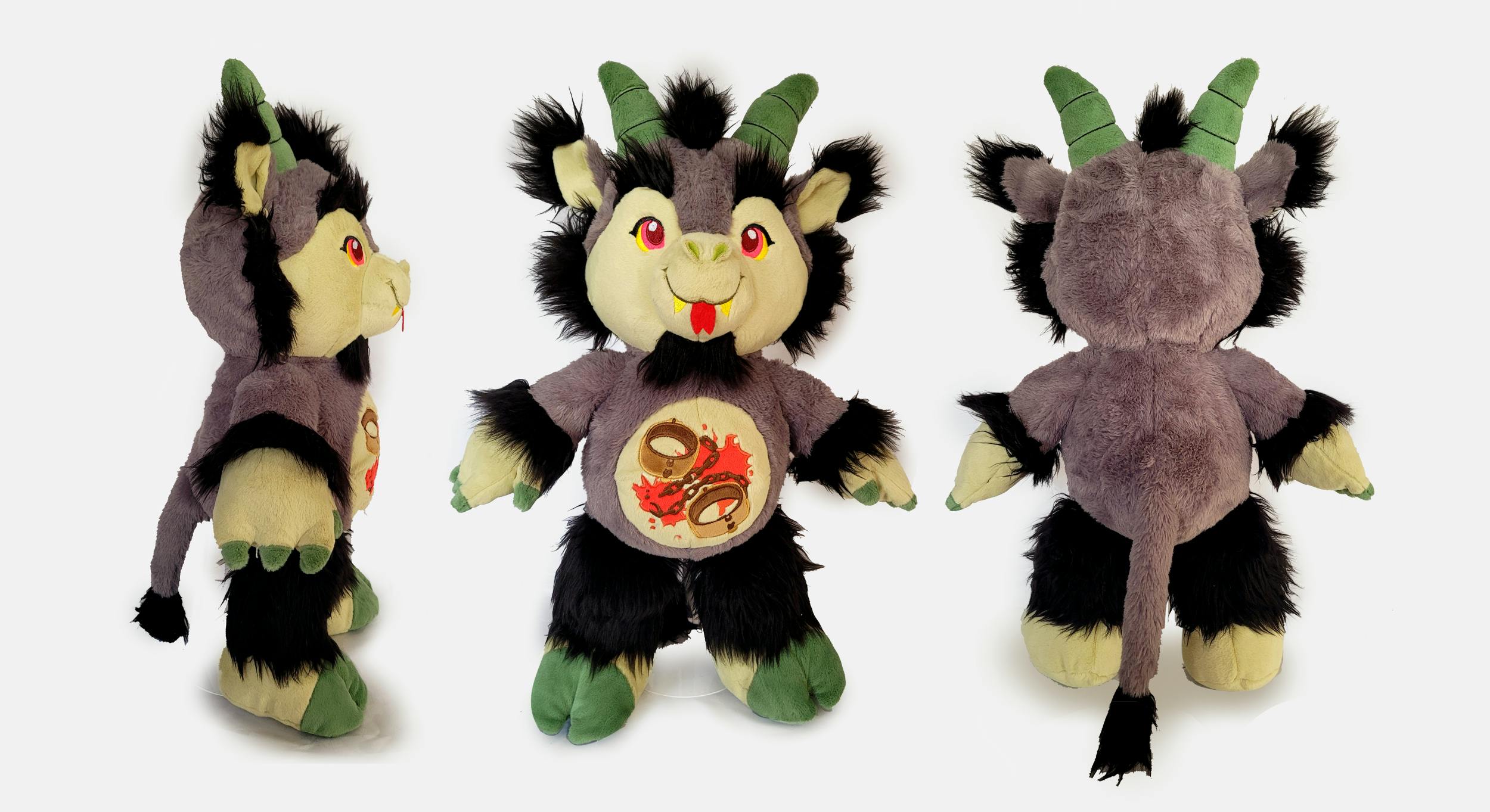 Snughouls are LARGE, cuddly cryptid plushies featuring floppy, posable limbs, plush fur, and detailed embroidery. Each one includes a hang tag with their name, unique artwork and a short character bio to help you get to know your new pal better!