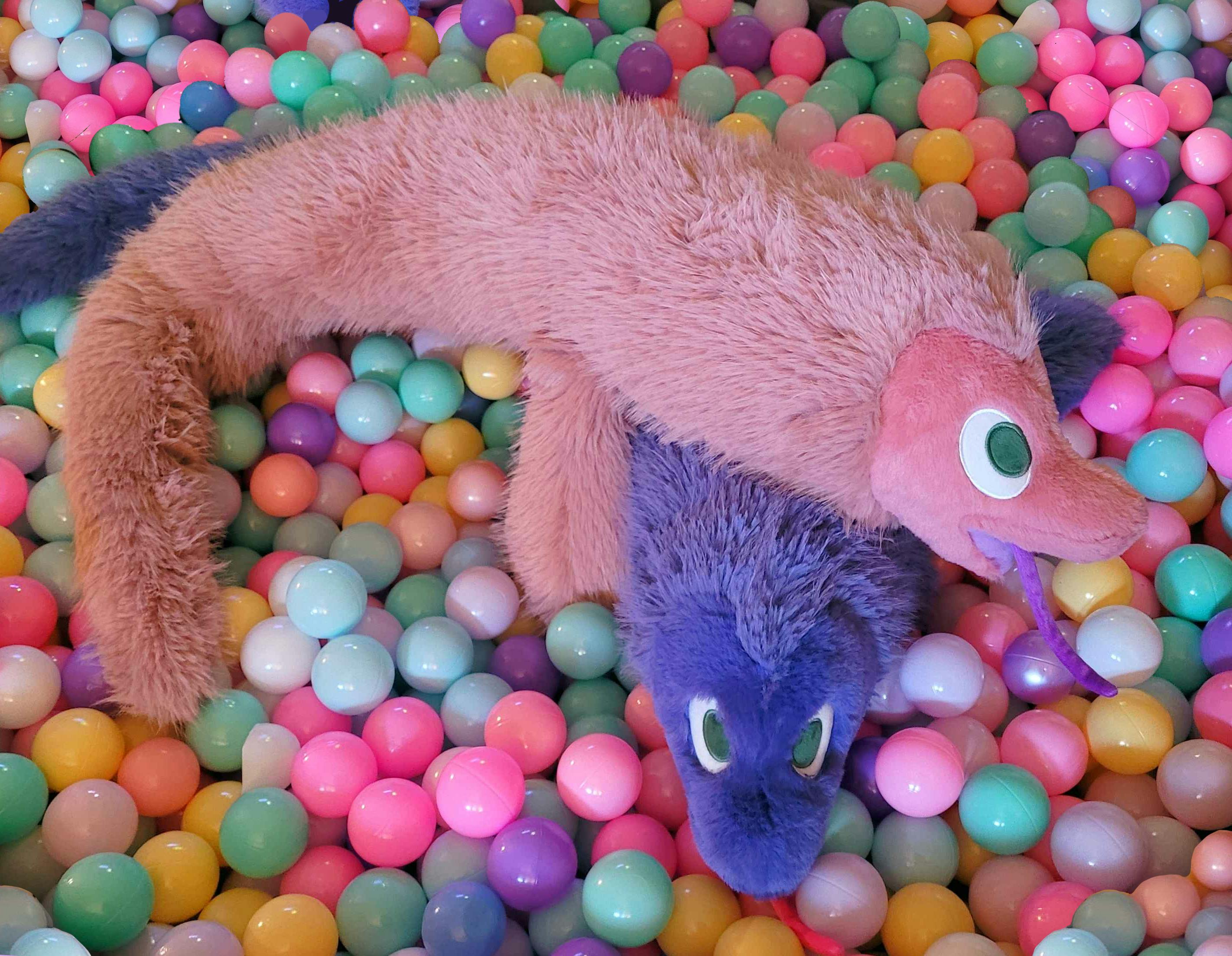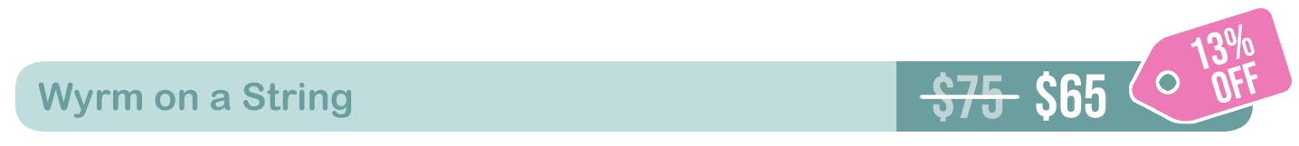 These 56" long wyrms are MADE for cuddling! Soft and loosely stuffed for maximum squishiness, wyrms make excellent pillows. Their tongues contain a thin bit of wire for posing, and each paw has four felt claws (for fierceness, of course!)