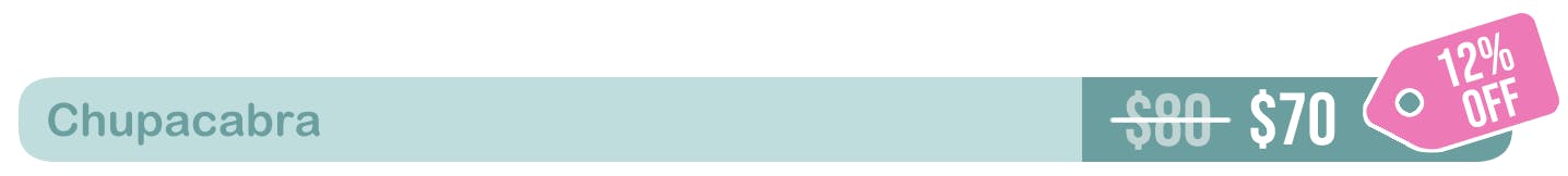 This weird, hairless mutt is a whopping 34" from snoot to tail tip and comes with weighted pellets in their feet for added heft. The chupacabra also includes a zipper on their stomach so you can adjust them to your liking with additional stuffing/weight/warmth!