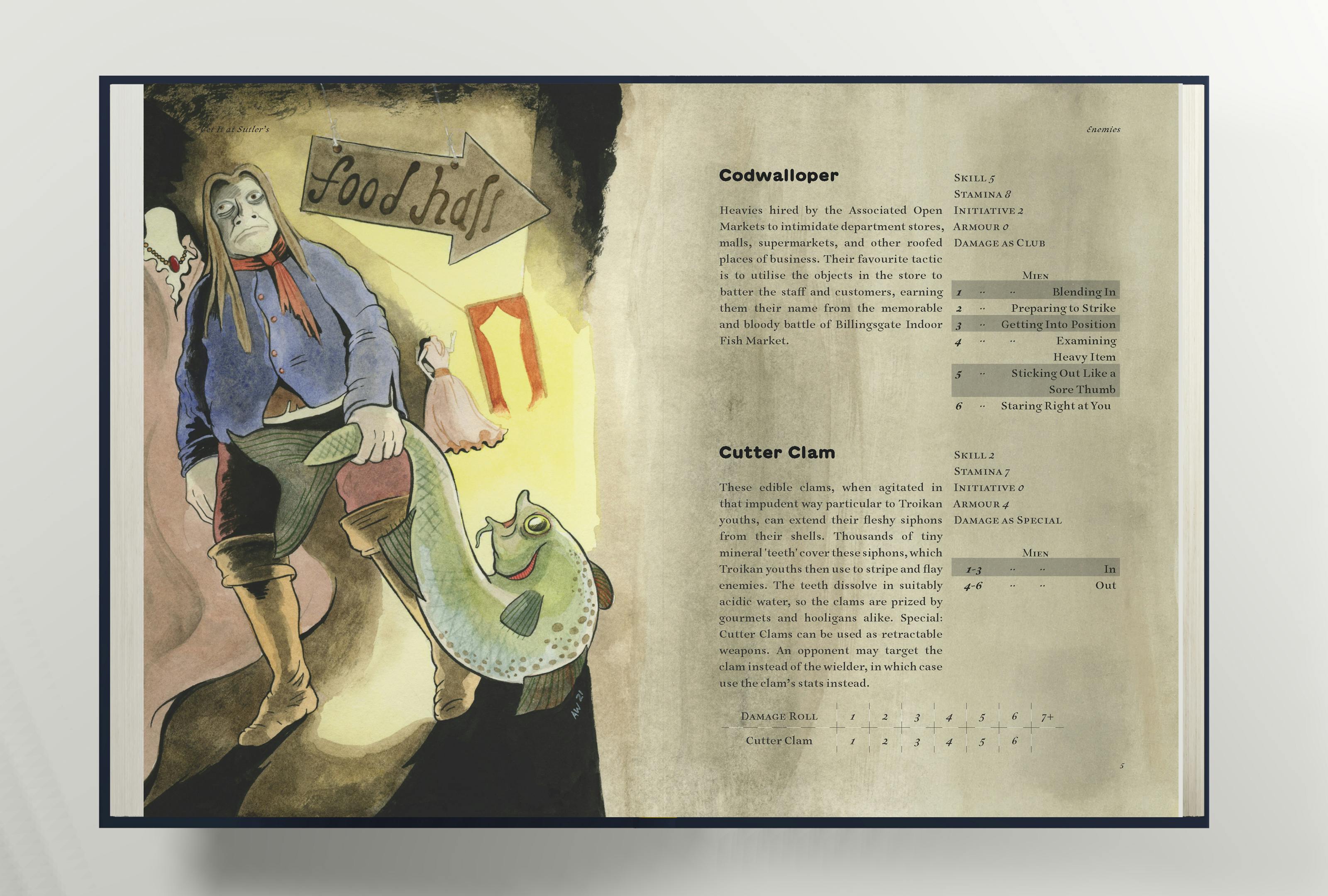Get It At Sutlers is a tool to add depth and convenience to ongoing campaigns set in the city of Troika. This huge expansion introduces the ability for player-characters to take on dayjobs at the prestigious department store, Sutlers! This can serve as the core for a whole campaign – where players meet endless interesting NPCs and pick up adventure hooks and juicy gossip – or as an as-you-need-it encounter generator for when the party needs a little bit of money to purchase a ticket to their next adventure.