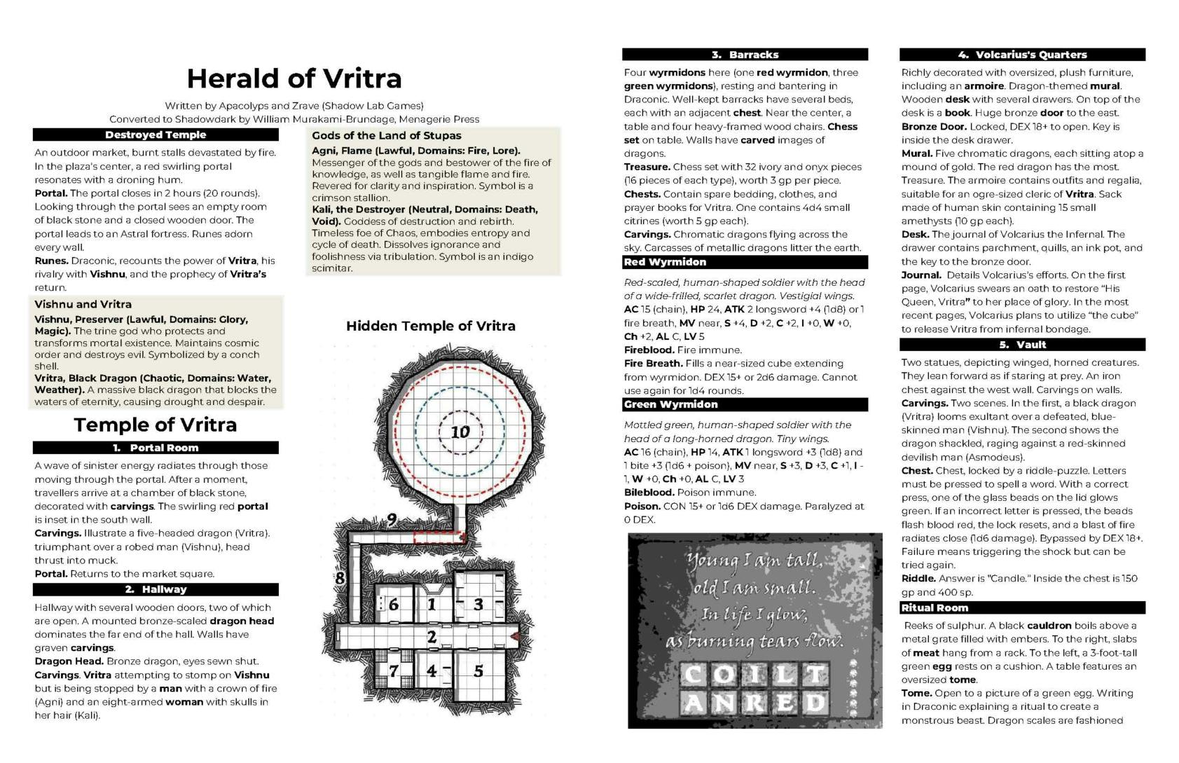 The adventurers must pursue half-dragon zealots through a burning portal and stop a dark ritual that could unleash Vritra, the Dragon of the Waters.