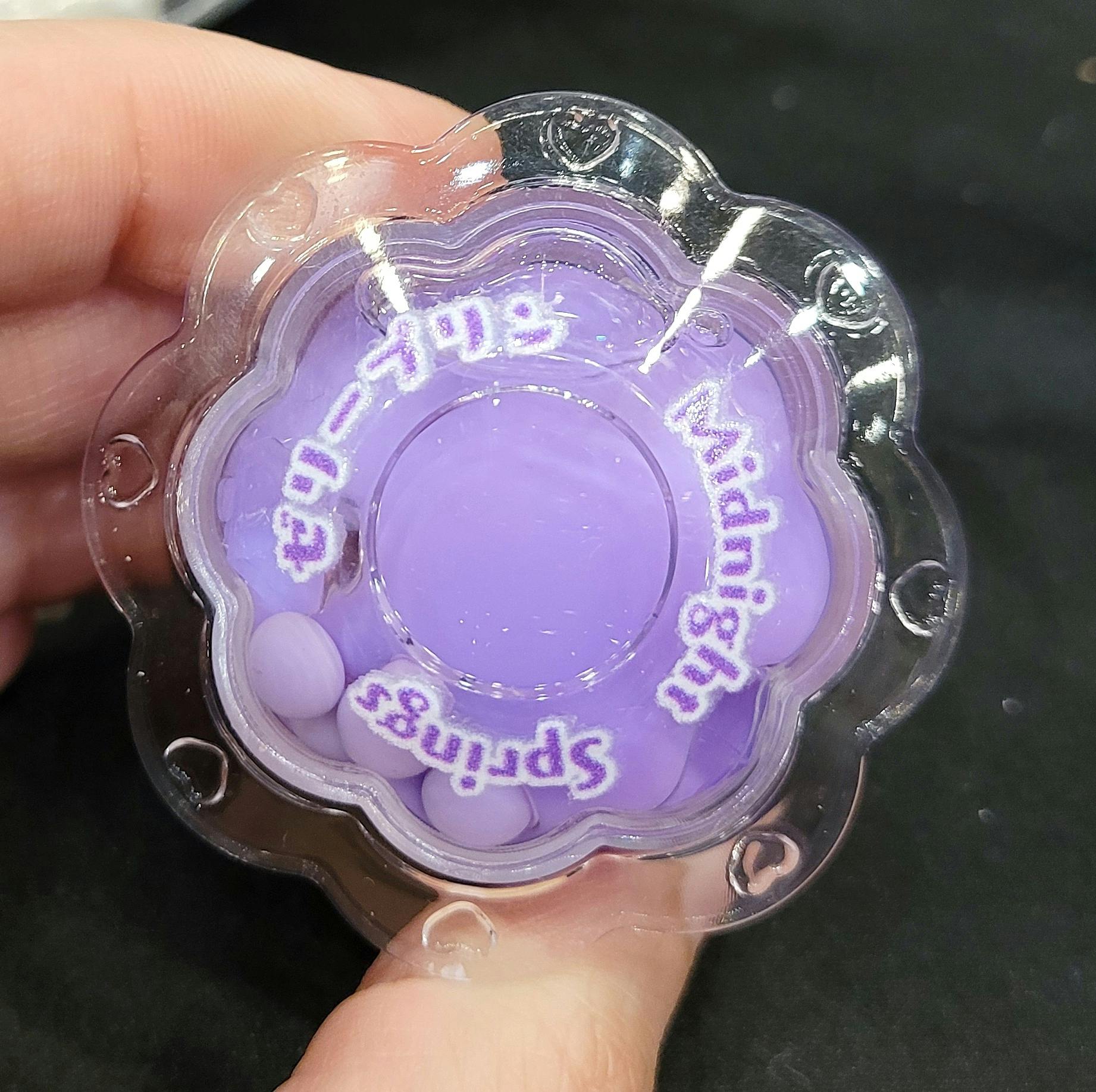 These were part of my first attempt at decorating these, in order to get a feel for how I wanted to... So I decided for the preorder store listing that you can get them with or without embellishments on the whipped cream (though the cherry is a given regardless), by request. The purple and pink ones will have matching color stars if they are chosen with embellishments, for the samples I only had blue and green unfortunately.