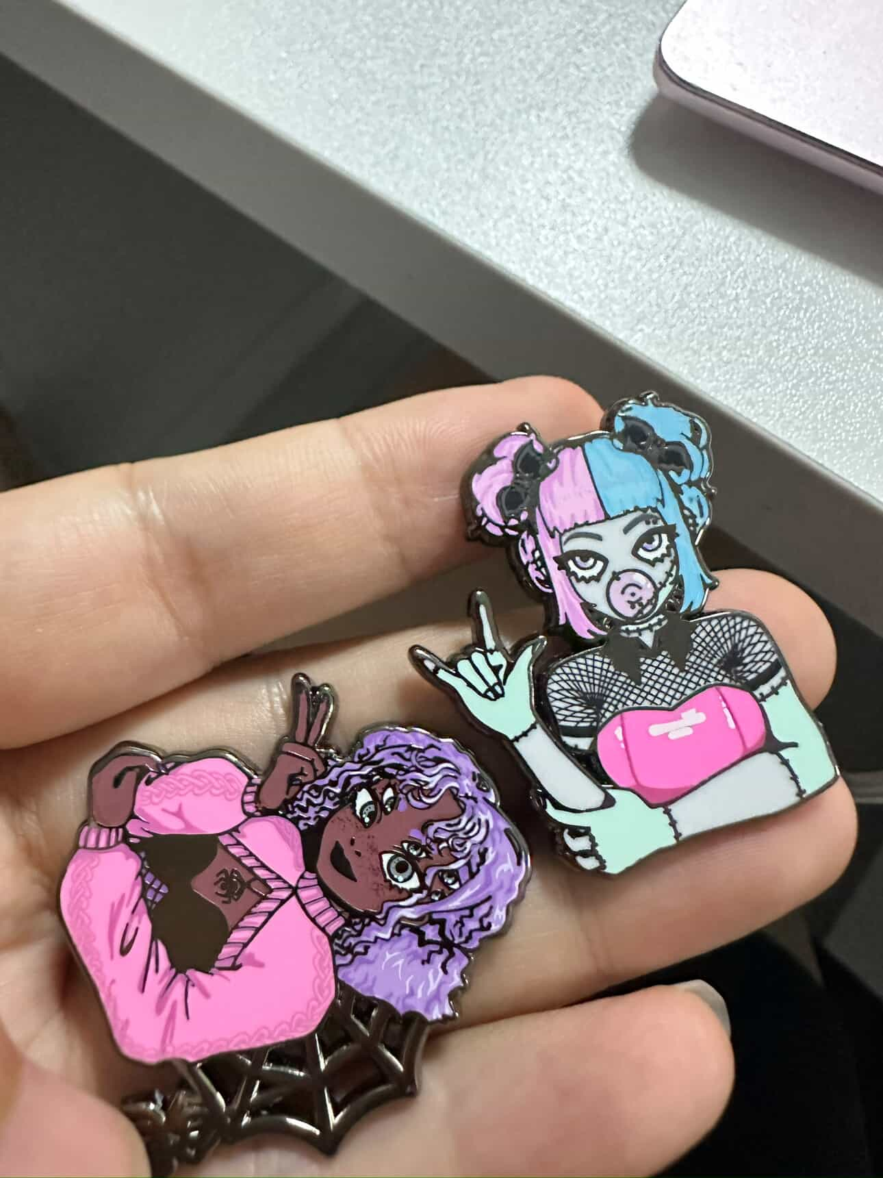 I have a few new manufacturers I am using for that campaign (instead of 1). This is because the one that's making this campaign's pins severely plummeted in quality. Every time she even sends me a picture for approval, it's got so many horribly visible flaws even when the pic is slightly blurry, like missing enamel or really smeared painting or polished so low that details are missing, so I panic and ask her what's going on with those details...and she's just like "please don't worry". Most of the pics I'm showing are from me being like girl, I'm still worried - so she sends me other photos after scrutinizing more. 🫠 She is shipping the first batch of my pins with me this week along with C's spiders and I'm veeeeery nervous to put it lightly. They're currently on holiday so I don't know how much that will delay their arrival.