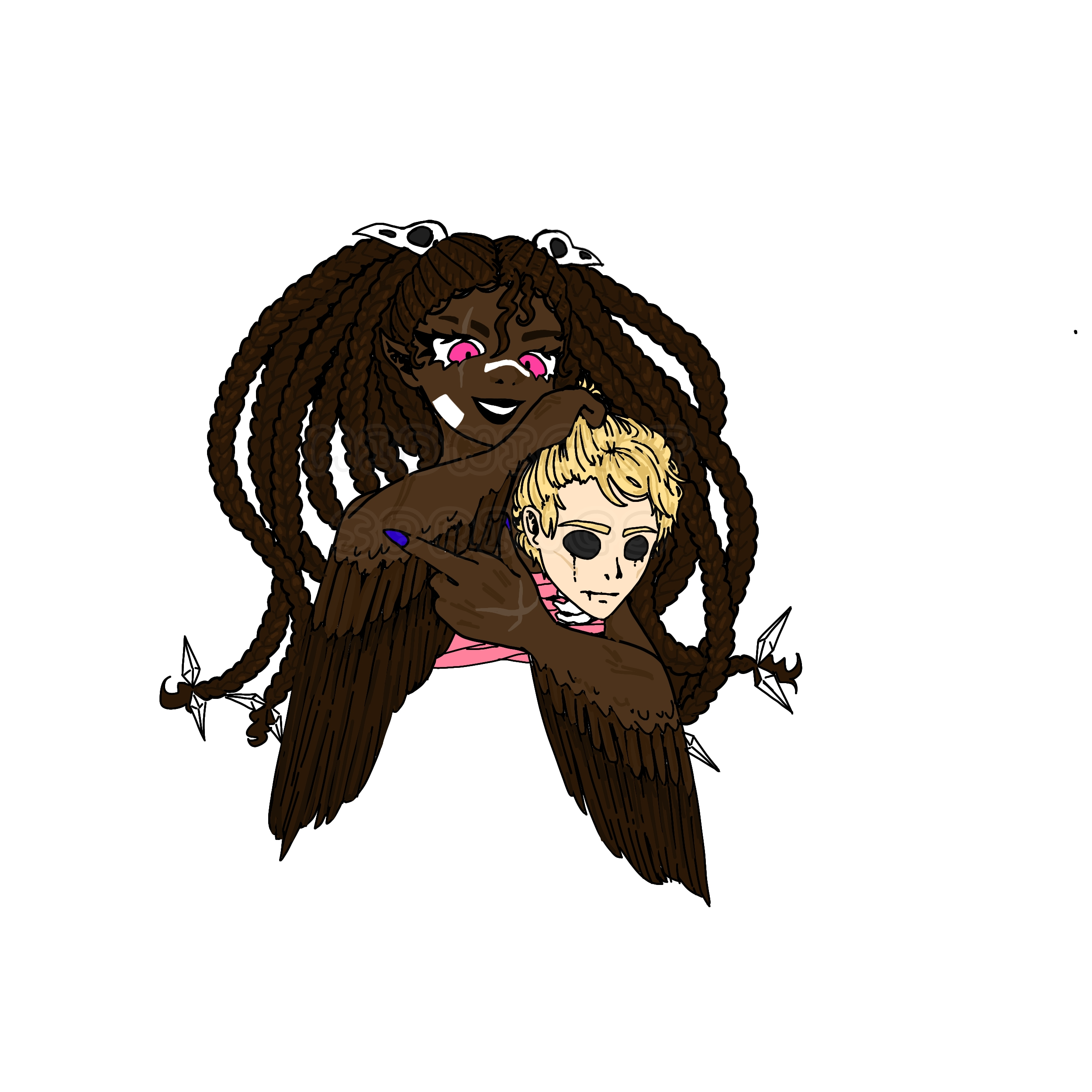 I think most if not all of you will be able to tell where I got inspiration from for her; I don't personally enjoy drawing fanart and have been OC-only for nearly a decade, but I really enjoyed aesthetically how their demons have glowing tattoo-like "patterns," and that some of them have yellow/golden irises instead of the typical red used for demons! So ultimately, that's the inspiration I gained from it and not really anything else subliminally (that I can tell), but it was enough to motivate me to get to this point. I like her. However, it's because I decided to go with black sclera and golden irises for her that I changed Angel's eyes. I don't want to be too repetitive. Her eyes and patterns will glow in the dark.