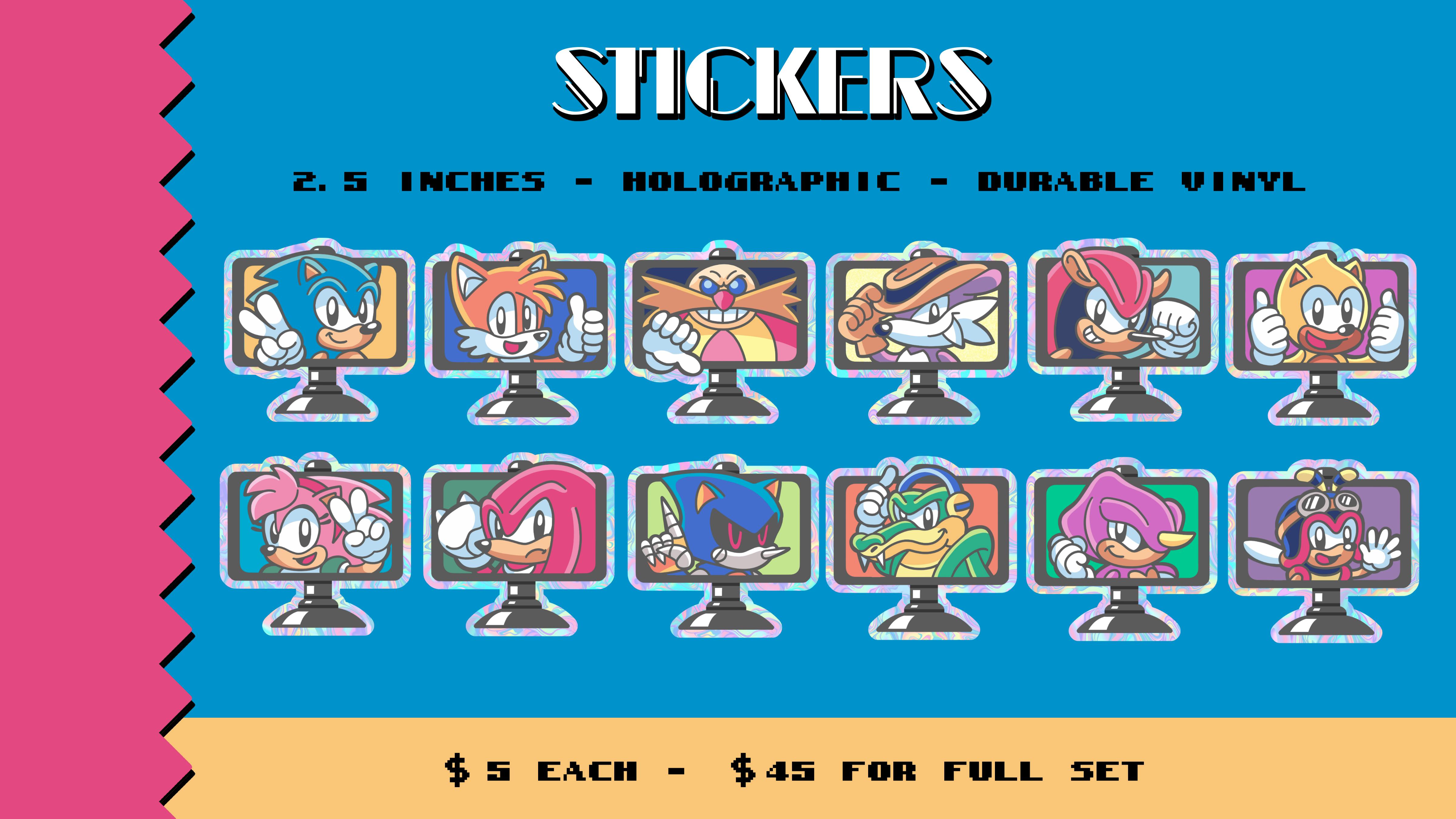 Did I forget to include your favorite character in my pin lineup? Let me design a signpost pin and sticker for you of whatever official Sonic character you like! You also get 12 pins and stickers unlocked in the campaign.