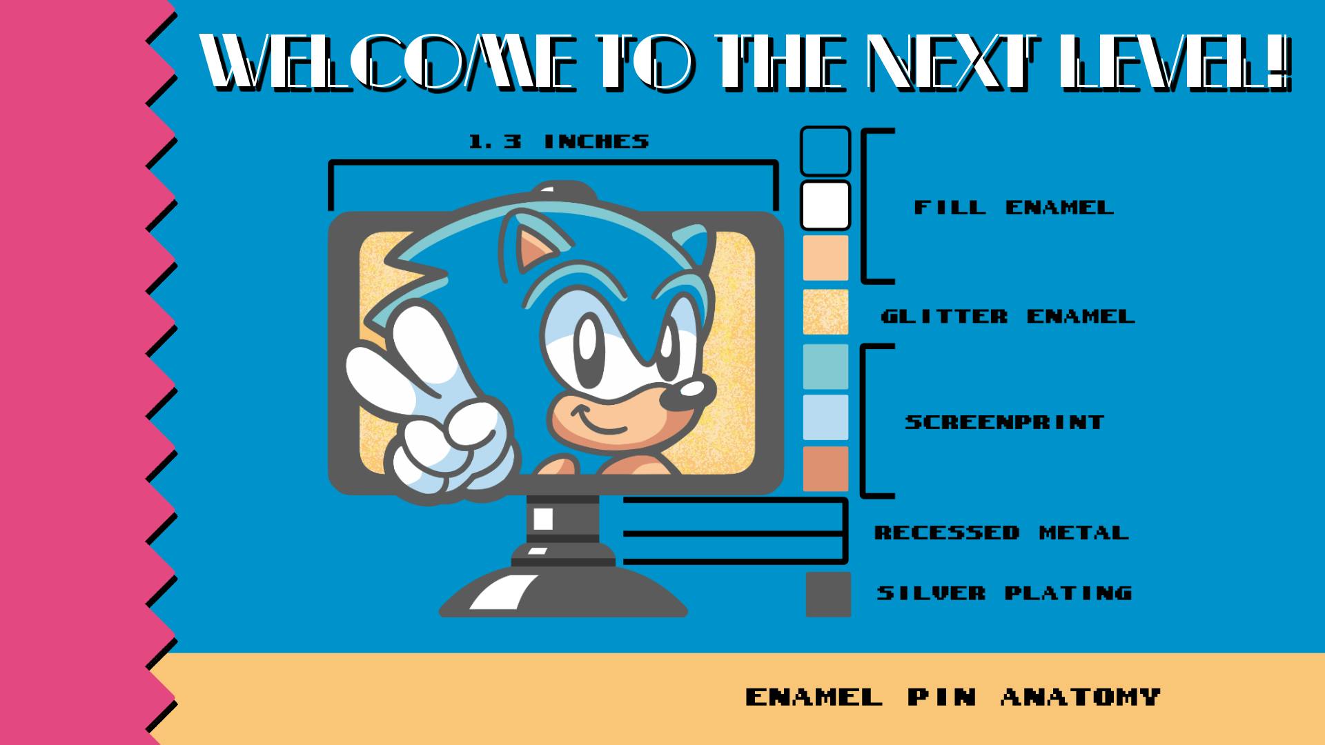 This time around, we're kicking it old school with a tribute of the world's most famous hedgehog and his many friends. These pins are based off the classic goal posts you run into the end of a stage, a fun accomplishment for all your hard work and efforts. Obstacles may have slowed you down, and maybe you lost a few rings along the way, but you made it to the end, and that's always worth celebrating! These pins are here to remind you that extraordinary things can happen if you believe in yourself~ 🎶
