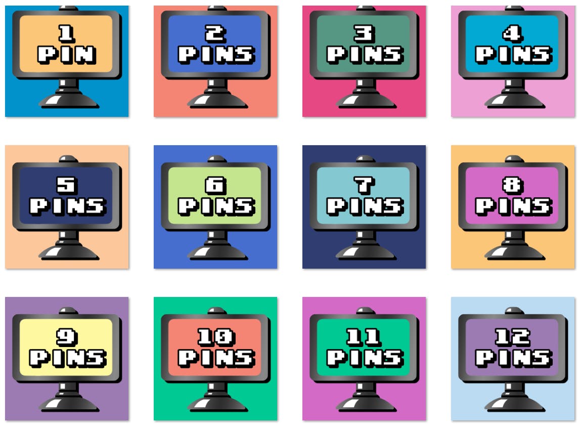 x 12 of the unlocked signpost pin designs available to choose from