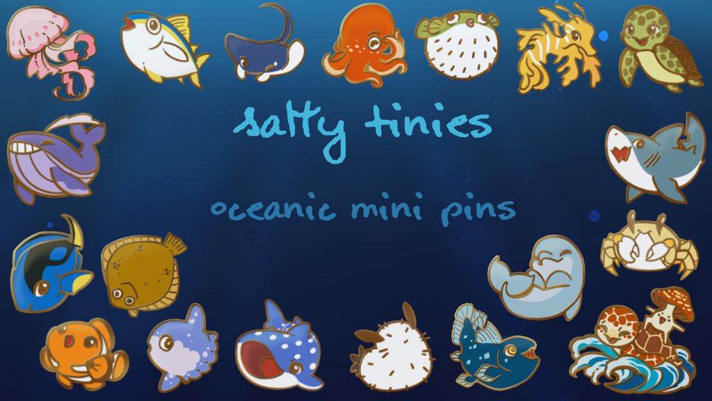 For those who know of my prior projects, although I am MindytheTurtle, I am more known for bees! ALL THE BEES! However, I have wanted to do an aquatic themed enamel pins since I started creating merchandise. The ocean is one of my favourite places as terrifying as it can be. But just the various life that live in there are absolutely fascinating! Sadly, I wasn't able to include all the different types of oceanic life, but I hope my selection is vast enough to add to your collection!