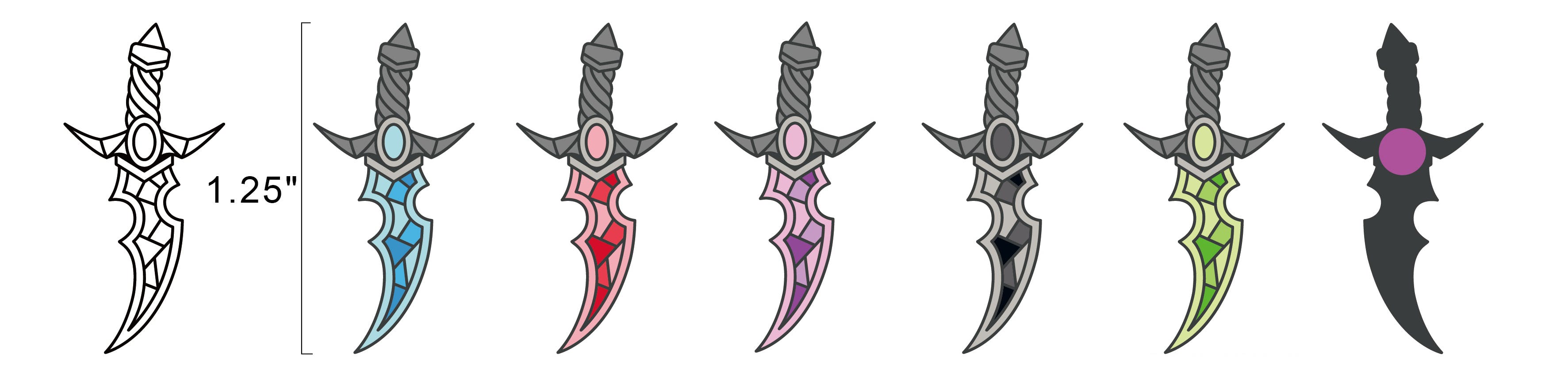 Due to a spacing issue, the magic dagger pin will only have one backing post. We wanted to have two backing posts, but our manufacturer recommended using only one since it would be difficult to attach a second post with the limited space.