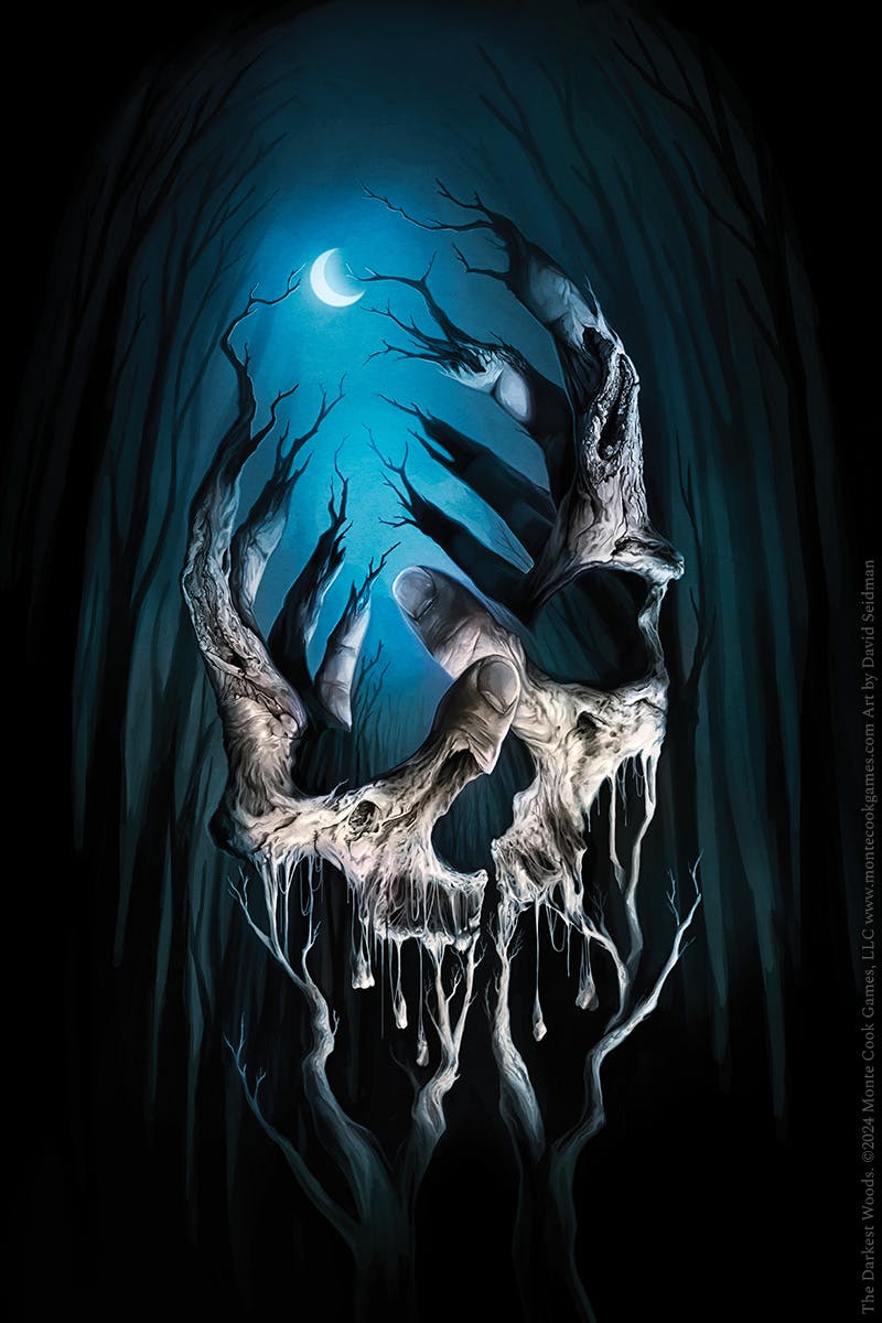 The Darkest Woods is a standalone companion to The Darkest House, the highly praised horror campaign supplement released by Monte Cook Games in 2021. If you’ve never experienced The Darkest House, there are several pledge levels that include it along with The Darkest Woods—a fantastic deal on two incredible horror experiences. (You do not need The Darkest House to use The Darkest Woods.)