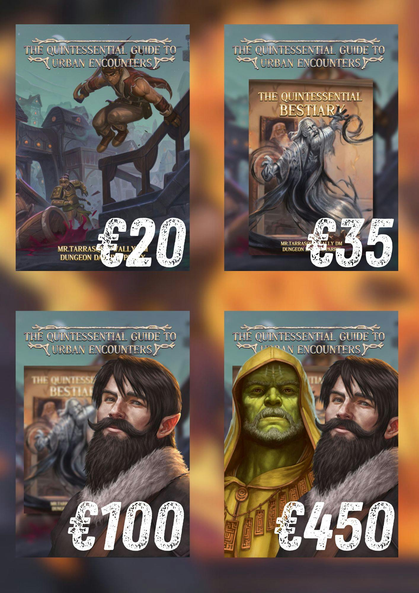 Get ready for the next installment of the Quintessential series: Urban Encounters! This time around, the team—consisting of JVC Parry, Dungeon Dad, WallyDM, and Mr. Tarrasque—will take you to the streets of Evrich, a city teeming with life and adventure around every corner. All brought to life by some of the most amazing artists like Danny Pavlov. Compatible with 5th edition.