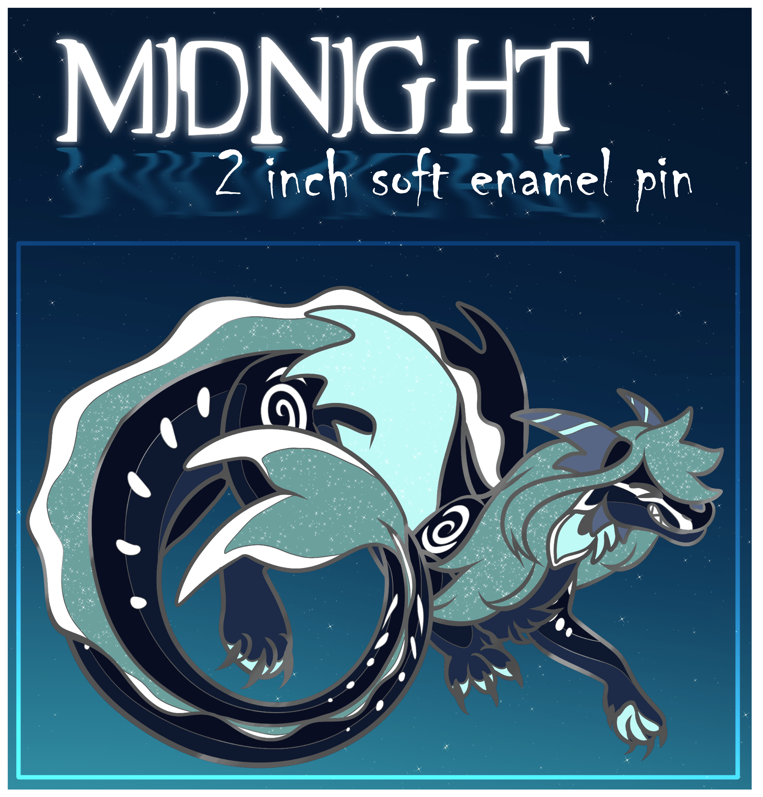 This pin is: - 2 inch in size - Soft enamel - the light blue/green colours will be glittery!! - ifff there is a way, I will try get the white to GLOW IN THE DARK!! - Silver nickel outline