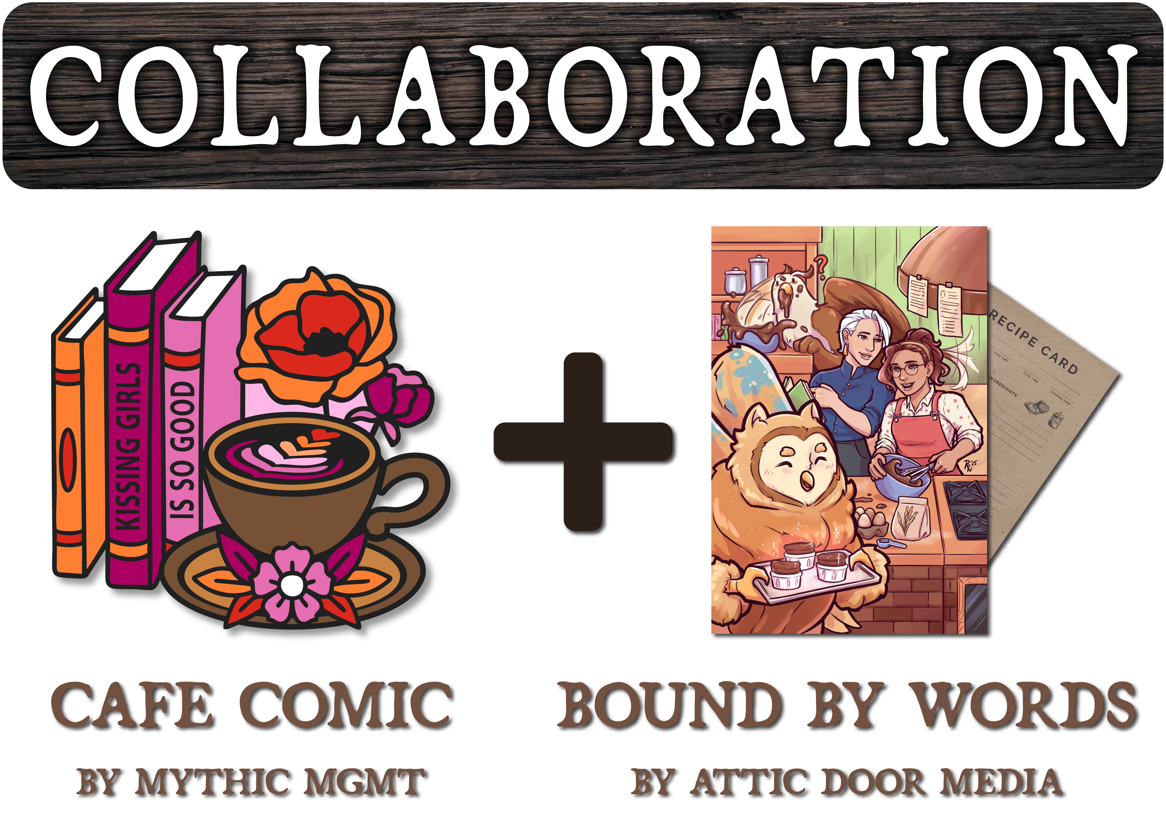 If you pledge to Cafe Comic (Mythic Mgmt) AND you pledge to Bound by Words (Attic Door Media) you will receive TWO free rewards! One will be a 1.5" enamel pin from the Cafe. The other reward will come from ADM, and will be a delightful art print of Hatch along with Madeline, Siora, and Oscar. It will even have a recipe on the back!