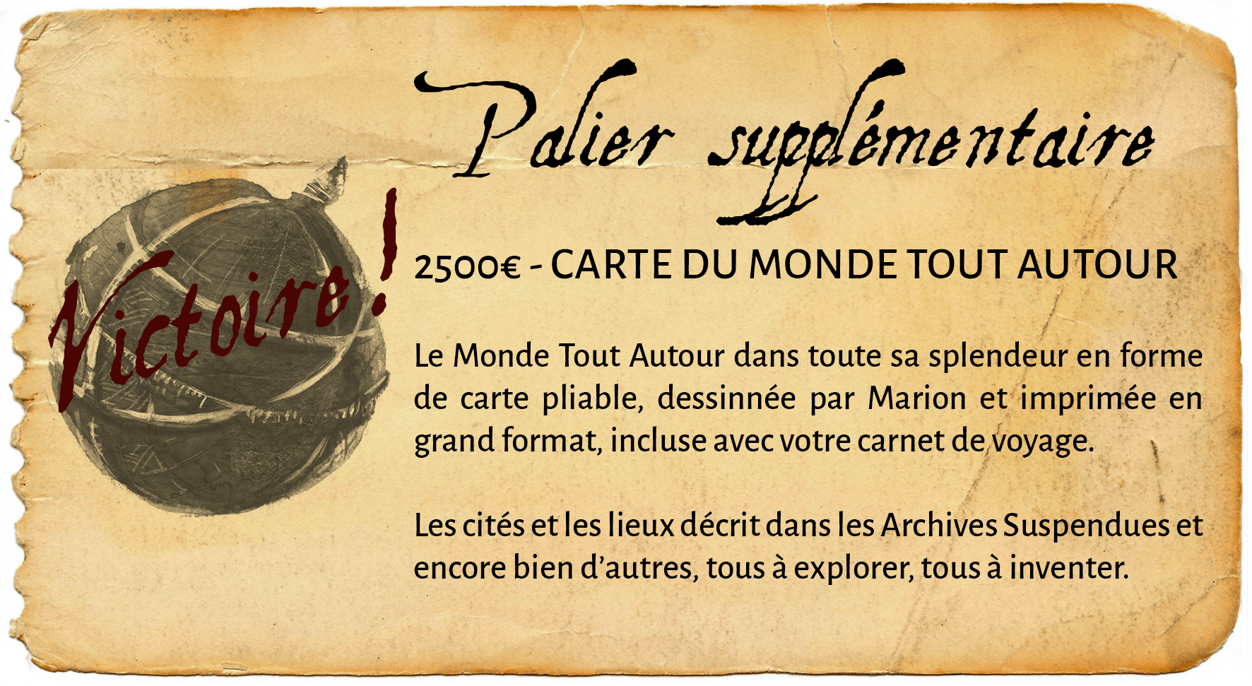 Incroyable! Nous n'avons juste pas eu le temps d'arriver à Lucca pour le festival et vous avez déjà arpenté le dernier palier pour la carte du Monde Tout Autour. L'affection que la communauté française a démontré pour ce petit grand jeu nous réchauffe le cœur. Nous allons faire de notre mieux pour mériter votre confiance.