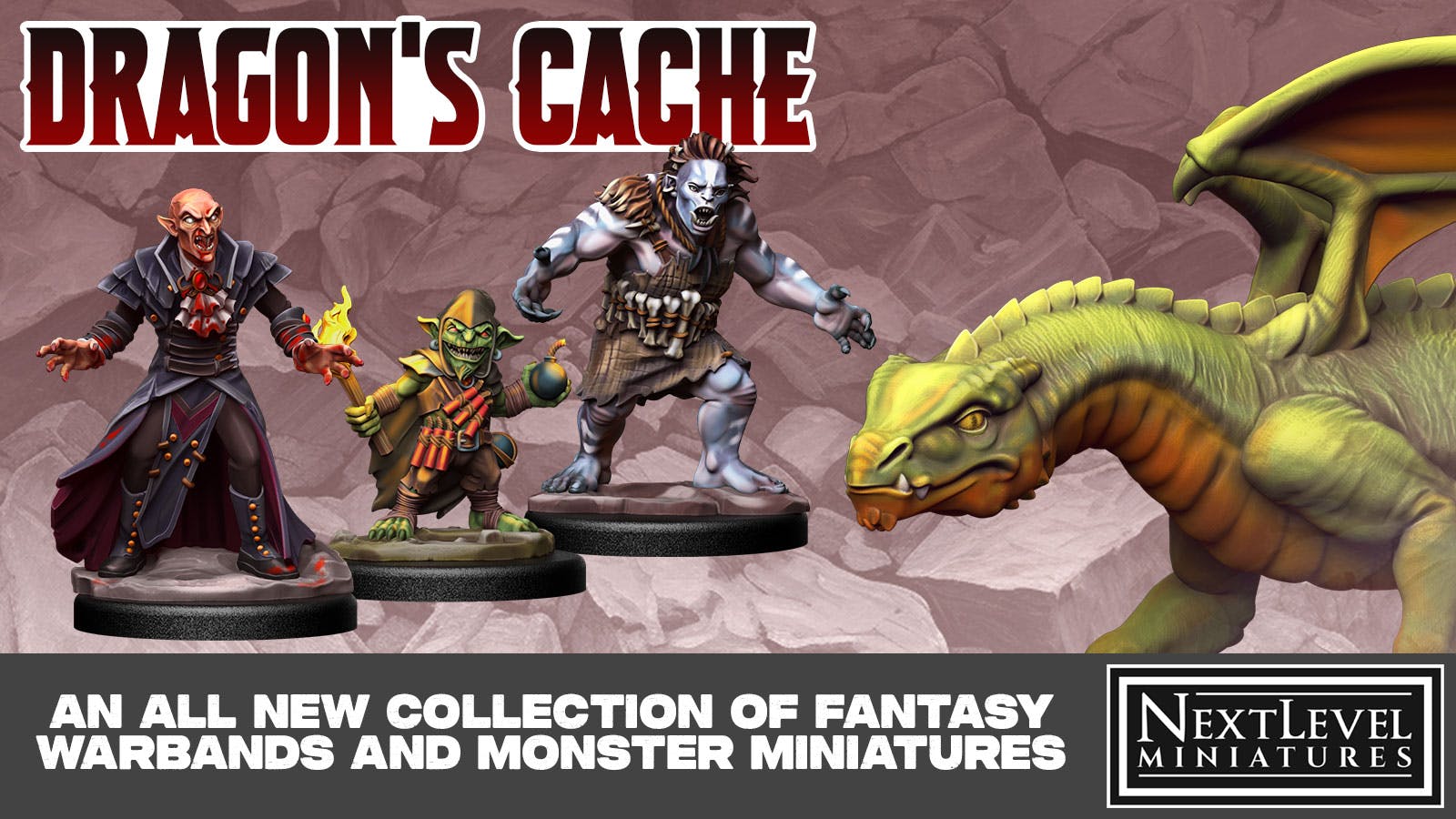Last on the agenda for today is that we want to announce our next upcoming project that will be launching over on Kickstarter - Dragon's Cache! Dragon's Cache features an all-new roster of minis that includes themed warbands and other fantasy monsters and miscreants for use in your favorite RPGs and tabletop games. We're excited to share more details about the project soon, but for now, please click here to go over to the pre-launch page and sign-up to be notified when it launches!