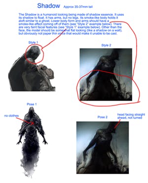 Once we've got a solid idea, we work up a brief to submit to the sculptor/modeler we've selected to work on it. The brief will contain the name of the subject, approximate size, references and other descriptions and details about the subject. We'll include style examples and guides for the artist to work from, along with the desired pose(s) and any additional elements we want incorporated into the model, such as clothing, weapons, facial expressions and more.