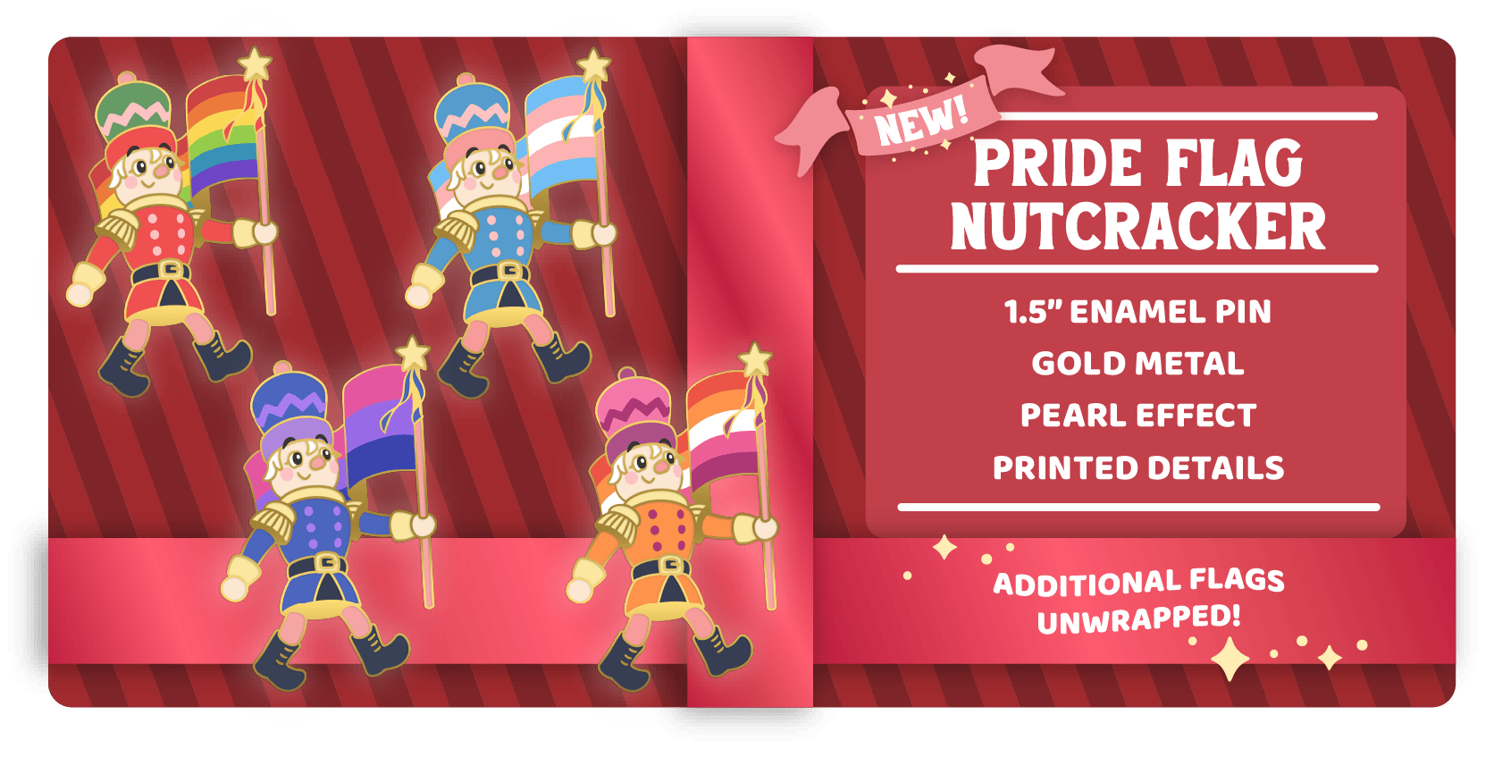 Thanks to your input from the last poll, we've added some Pride Flag Nutcrackers pins to the Add-ons! Choose your nutcracker variant in the post-campaign survey. Vote on additional variants to be unlocked in the poll below. If you have more than one choice, make sure to leave it in the comments of the poll.