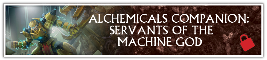 And now, let's mark a few milestones to help us keep pace as we work through the third week of the campaign before adding more to our Alchemicals Companion. At $123,000 in Funding - ALCHEMICALS Digital Wallpaper - Awesome Alchemical Exalted artwork will be used to create a wallpaper for your computer desktop. This digital wallpaper will be added to the rewards list of all backers supporting this project. At $126,000 in Funding – ALCHEMICALS VTT Token Pack – Digital assets will be created to support online play for Alchemcials, including key character and creature tokens from the book. This online asset pack will be added to the rewards list of all backers. At $130,000 in Funding - ALCHEMICALS COMPANION:Servants of the Machine God - Quick Character traits for a variety of machine spirits found in the Realm of Brass and Shadow.