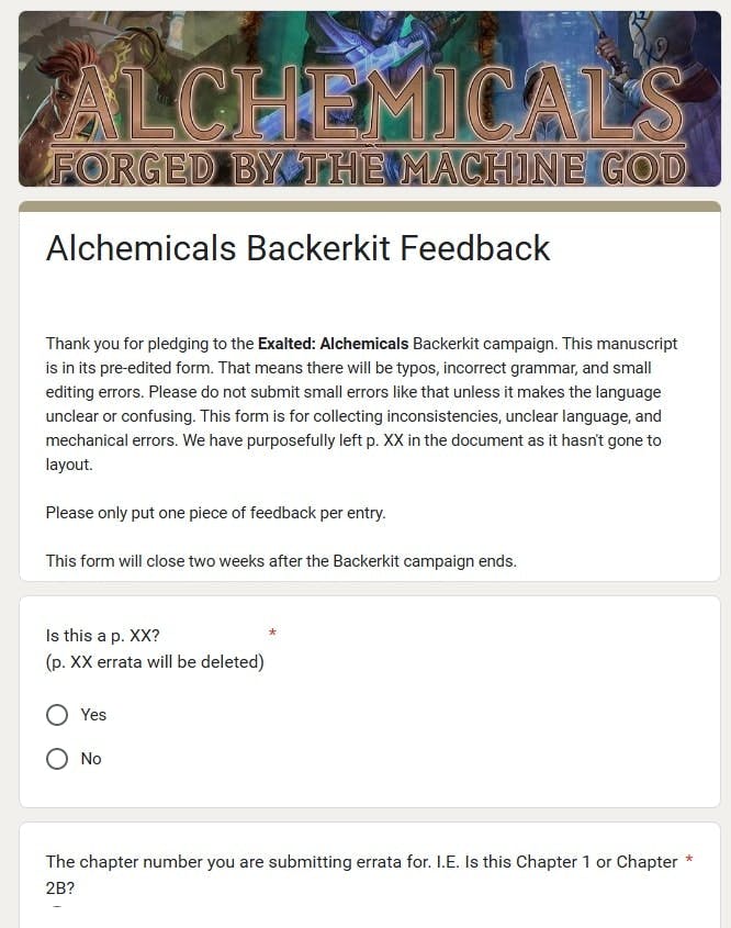 In fact, you can help guide the team through the next stages of development by providing feedback on these manuscript previews! The Onyx Path team has set up a special Feedback Form just for campaign backers for this very purpose: https://forms.gle/TNemGoMirkKR4h8U6