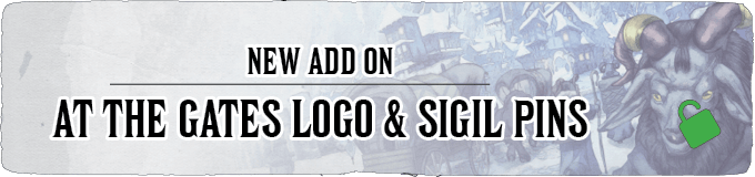 ACHIEVED! -At 975 Backers - NEW ADD ON: AT THE GATE LOGO and SIGIL PINS - A single hard enamel screen-printed 2" At The Gates logo pin will be available as an Add On option for $14, and five different soft enamel 1.5" sigil pin designs will be available as an Add On option at $10 each or the set of all 5 for $45. Single pin selection will be confirmed in the Pledge Manager. Fulfillment will be handled by NerdyKeppie.com and additional shipping charges will be collected at time of fulfillment.