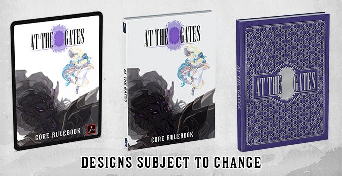 The primary purpose behind this crowdfunding campaign is to enable Onyx Path to create a fully-developed PDF and two hardcover versions of At The Gates. With your support we create a standard full-color hardcover book, which will be sent out as a reward to backers and also made available to game and hobby stores through Onyx Path's distribution partners. In addition, we want to create a limited edition deluxe version, with special cover design featured on a leatherette cover and a bound-in bookmark that'll be available only through a special pledge tier.