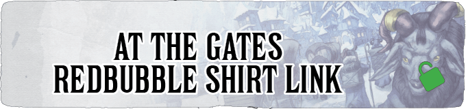 ACHIEVED! -At $46,000 in Funding – AT THE GATES SHIRT ON REDBUBBLE – An At The Gates-themed Backer shirt will be hosted on Onyx Path’s Redbubble store for a limited time. Only backers will be notified when the shirt becomes available for purchase.