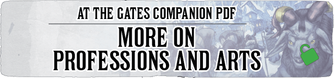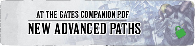ACHIEVED! - At $50,000 in Funding - AT THE GATES Companion - New Advanced Paths - The Companion PDF will be expanded to include a section with new Advanced Profession Paths for characters to take if they want to unlock new Arts specific to their mastery of these professions. Backers receiving the At The Gates PDF as one of their rewards will automatically have the Companion PDF added to their rewards list as a bonus.
