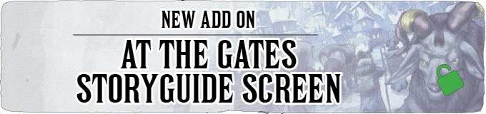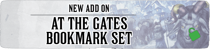 ACHIEVED! -At $32,000 in Funding - AT THE GATES Storyguide Screen - A three-panel Storyguide Reference Screen with charts and information for running a game set in the lands of Everend will be created and offered as an Add On to any hardcover reward tiers for +$25. ACHIEVED! - At $36,000 in Funding - AT THE GATES Bookmark Set - Need something cool to mark your place? We'll have a set of six At The Gates cardstock bookmarks offered as an Add On to any hardcover reward tier for +$15.