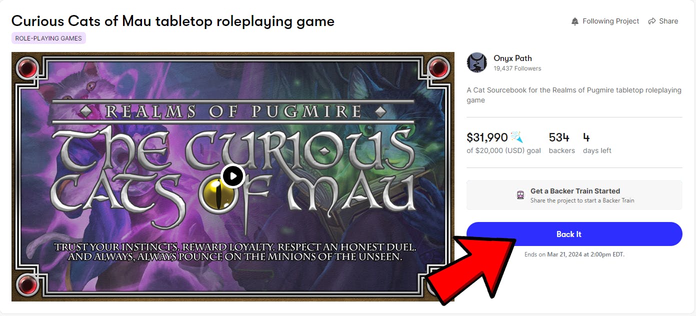 Like it says right at the top of the campaign story page, we've come together to help create a fully developed PDF and hardcover versions for this cat-themed expansion for the Realms of Pugmire tabletop roleplaying game. Many of you have already helped us fund the core rulebook for this game and are ready to expand into the monarchies, while some of you may be learning about this fantastical world for the first time. Or maybe you loved the first edition and want to see how the game has evolved over the years. Here's the starting point for your curiosity!