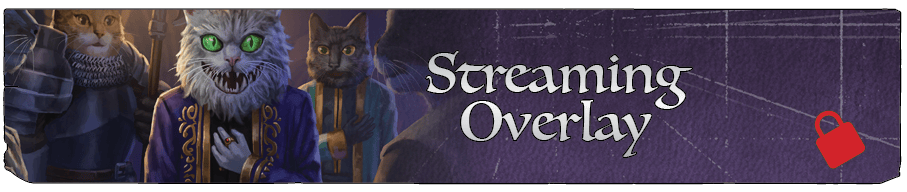 At $40,000 in Funding – STREAMING OVERLAY – A set of overlays for your online Curious Cats game will be created, for your use when streaming your cat-centric Realms of Pugmire game. This reward will be added to the rewards list for all backers.