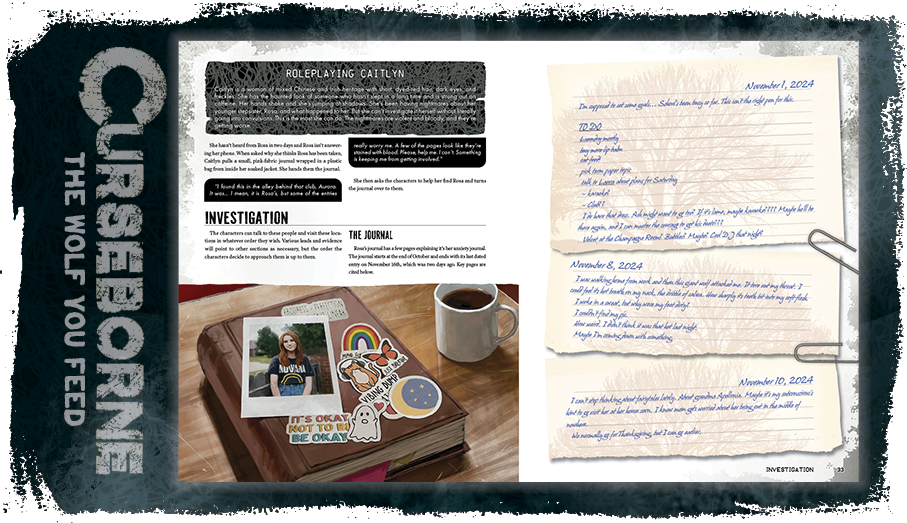 This is a super-quick two week campaign for physical versions of the Curseborne Jumpstart! It’s a bigger book than Onyx Path's usual jumpstarts, giving you everything you need to play a slice of Curseborne with The Wolf You Feed, an introductory adventure which follows an investigation into the disappearance of Rosa Rivers (which can also be used for Curseborne if you have the full rulebook). Also, if you loved the five iconic characters from the Curseborne Ashcan, the jumpstart will have updated and expanded versions of those characters in beautiful spreads with all the information players need.