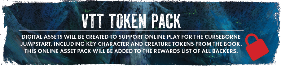 Digital assets will be created to support online play for the Curseborne Jumpstart, including key character and creature tokens from the book. This online asset pack will be added to the rewards list of all backers