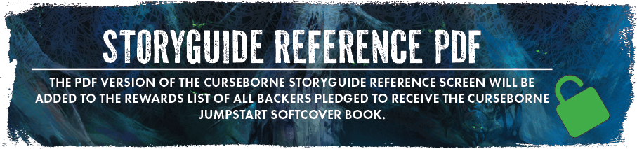 STORYGUIDE REFERENCE PDF - The PDF version of the Curseborne Storyguide Reference screen will be added to the rewards list of all backers pledged to receive the Curseborne Jumpstart softcover book.