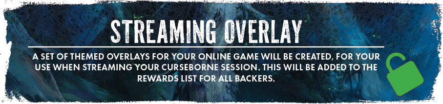 STREAMING OVERLAY - A set of themed overlays for your online game will be created, for your use when streaming your Curseborne session. This will be added to the rewards list for all backers.