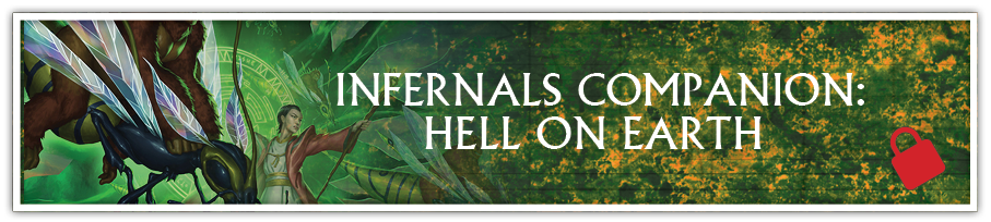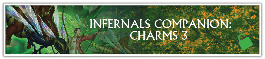 INFERNALS COMPANION SUPPLEMENT: CHARMS 3 - Further Charms for the Infernal Exalted will be added to the Infernals Companion supplement. Backers receiving the Infernals PDF will receive the Infernals Companion PDF as a bonus reward. Backers receiving the Infernals Deluxe hardcover will also receive links to purchase a discounted Print-on-Demand version of the Infernals Companion book.